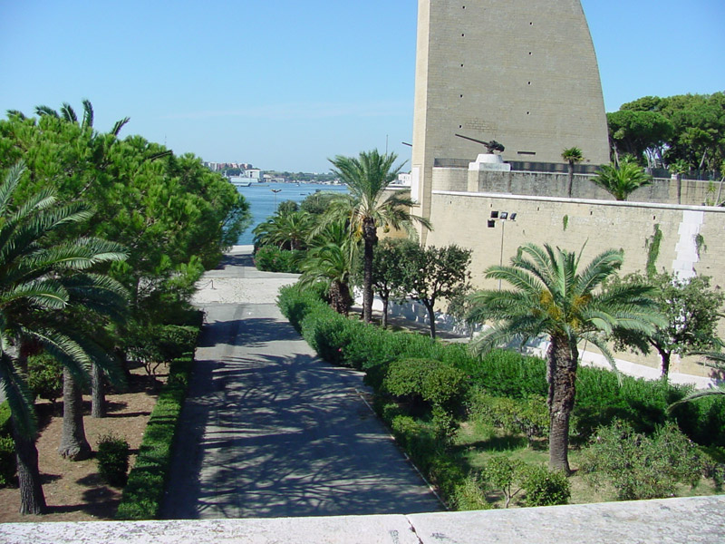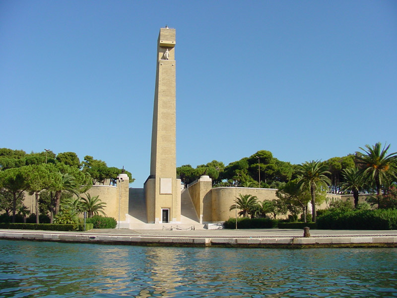 Il Monumento Nazionale al “Marinaio d’Italia“, costruito nel 1933 per iniziativa della Lega navale italiana in occasione del conferimento dell’onorificenza della Croce di guerra alla città pugliese, è realizzato in pietra di carparo di Trani e ha la forma di un gigantesco timone di nave, alto 54 metri dal piazzale superiore su cui sorge e 68 metri dal piazzale sottostante. Sulla porta d’accesso è posta una lapide che ricorda il sacrificio dei marinai italiani caduti. Ai lati del Monumento, nel Piazzale superiore, si trovano due ancore appartenute alle corazzate austriache Viribus Unitis e Tegetthoff e due cannoni provenienti da altrettanti sommergibili austriaci.