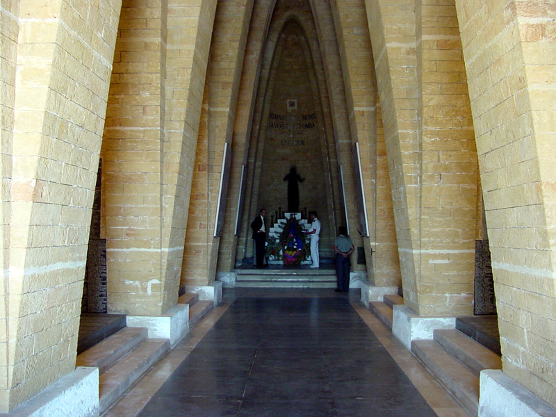 Alla base si apre l’accesso ad una cripta votiva ad arcate ogivali con navata centrale ed otto nicchie. Sull’altare si erge una statua in bronzo della Madonna Stella Maris. Nell’interno sono scolpiti i nomi dei 5.922 nomi dei marinai caduti durante la prima guerra mondiale e, numericamente quelli della seconda guerra mondiale (33.900) e delle unità militari e mercantili affondate (rispettivamente 870 e 2.274). Alle pareti della cripta sono ricordati i nomi dei marinai insigniti di Medaglia d’Oro nel corso della Prima Guerra mondiale (8) e della Seconda (118).
