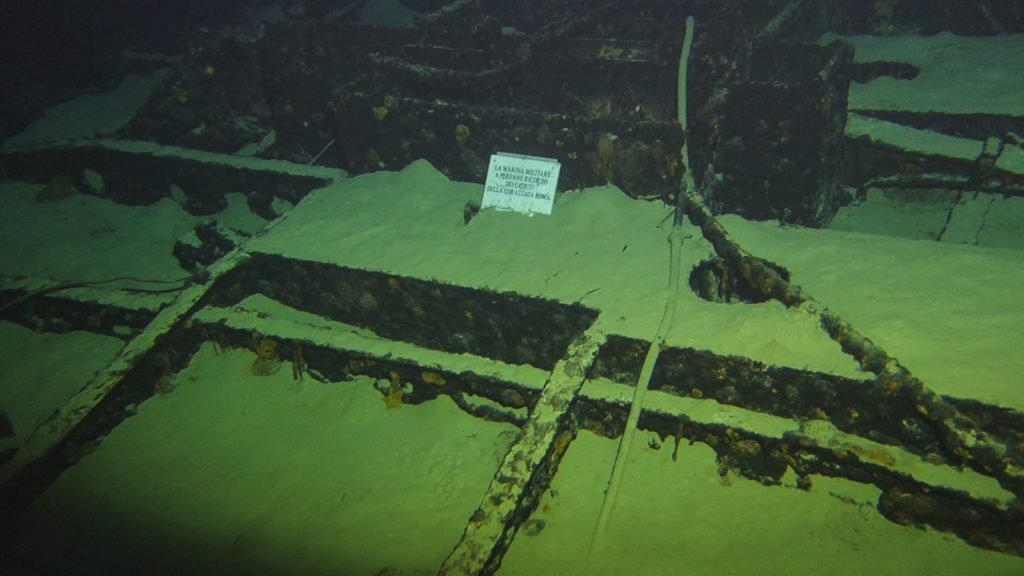 La regia nave Roma, uno dei più importati sacrari della Marina Militare, è stata identificata il 17 giugno del 2012. Parte del relitto si trova adagiato a oltre mille metri di profondità e a circa 16 miglia dalla costa sarda del Golfo dell’Asinara. Nel 2018 sono state effettuate delle nuove esplorazioni sul relitto con i mezzi di nave Vieste.