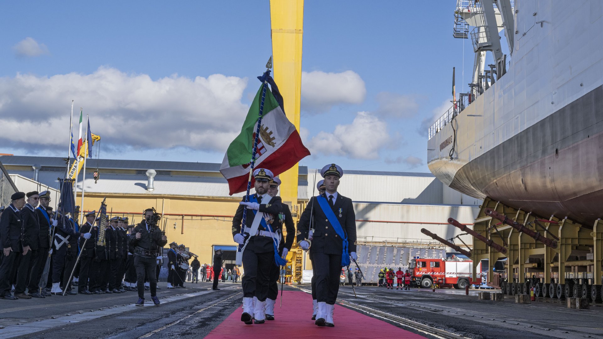 Alla cerimonia hanno preso parte i Sottosegretari di Stato per la Difesa, On. Matteo Perego di Cremnago e Sen. Isabella Rauti, il Capo di Stato Maggiore della Marina Militare, Ammiraglio di Squadra Giuseppe Berutti Bergotto, il Presidente della Regione Liguria, Dott. Marco Bucci, il Presidente di Fincantieri, Dott. Biagio Mazzotta, l’Amministratore Delegato di Fincantieri, Dott. Pierroberto Folgiero e numerose altre autorità civili, militari e religiose.
